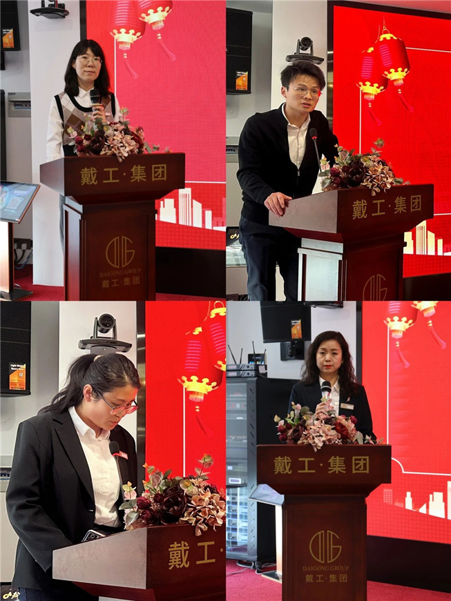 集團副總裁兼總經理周麗在會上表示:回顧2023年,對戴工集團來說,是不平凡的一年,歷經三年疫情的考驗,集團穩(wěn)步發(fā)展。這一年集團在面臨諸多的挑戰(zhàn),受大環(huán)境影響,經濟形勢嚴峻、市場競爭異常激烈的情況下,在集團董事長的領導下以及各級負責人和全體員工的努力下,圍繞著企業(yè)年初制定的戰(zhàn)略目標,秉承“以質量求生存,以服務求發(fā)展”的經營理念,視困難為挑戰(zhàn),化挑戰(zhàn)為機遇,在企業(yè)管理、品牌建設、經營業(yè)績等方面均收獲了喜人的成績和經驗。表示在2024年集團在企業(yè)管理方面、品牌建設方面以及經營業(yè)績方面將投入更大的支持,戴工人要堅定發(fā)展信念,增強憂患意識,在市場大局中找準定位和自身優(yōu)勢,適應市場變化,迎難而上,奮力在高質量發(fā)展階段蹚出適合我們自己的新路線,在逆境中爭創(chuàng)佳績。在講話中總經理還下達了2024年戴工集團的年度總產值10億目標任務。在2024年,希望戴工人能保持對事業(yè)的熱情和追求卓越的精神,勇于創(chuàng)新,勇于擔當,不斷提升自身的工作技能和職業(yè)素養(yǎng),為公司的發(fā)展貢獻自己的力量。同時,也希望大家能保持團結和合作的精神,支持公司的戰(zhàn)略部署與組織調整,共同打造一個更加美好的未來。在新的一年里能夠攜手共進,再創(chuàng)輝煌。最后總經理還在會上祝愿戴工的同事們以及業(yè)界合作伙伴們在龍年平安健康、事業(yè)蓬勃、幸福如意。