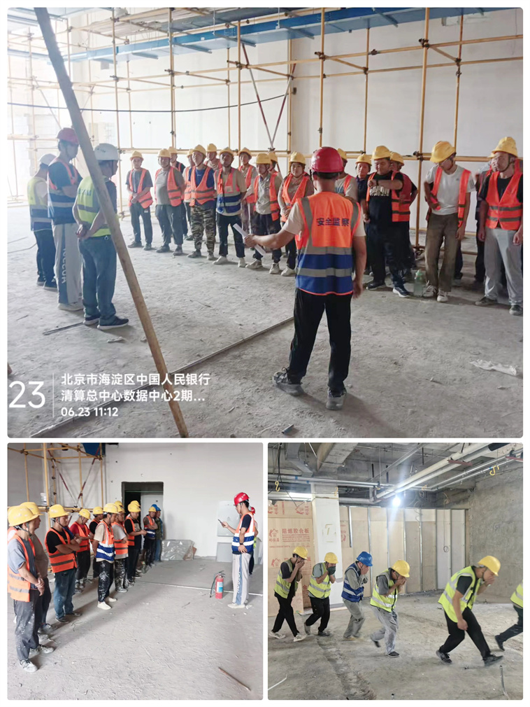 各項(xiàng)目單位在項(xiàng)目經(jīng)理積極組織下,均精心籌備并開展了消防演練活動(dòng)。演練現(xiàn)場(chǎng)模擬了施工現(xiàn)場(chǎng)突發(fā)火情的場(chǎng)景,隨著警報(bào)聲響起,施工人員迅速按照預(yù)定路線,用濕毛巾捂住口鼻,彎腰低姿、有序地向安全區(qū)域疏散。整個(gè)疏散過程緊張有序,所有人員都在規(guī)定時(shí)間內(nèi)安全撤離至指定地點(diǎn)。隨后,專業(yè)人員對(duì)此次疏散演練進(jìn)行總結(jié),指出存在的問題并提出改進(jìn)建議,有效提升了施工人員在火災(zāi)發(fā)生時(shí)的應(yīng)急逃生能力。