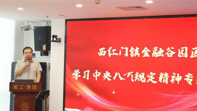 戴輝書記在致辭中,首先對(duì)西紅門鎮(zhèn)非公黨建工作指導(dǎo)站常務(wù)副站長(zhǎng)陳亞檬同志;戴工建設(shè)集團(tuán)董事長(zhǎng)戴澤平同志、同興社區(qū)黨支部丁燕濤、侯明月同志,以及金融谷園區(qū)各“兩新”黨組織書記、黨員們的到來表示熱烈歡迎與衷心感謝。戴輝書記強(qiáng)調(diào),希望各位黨員和全體員工珍惜此次學(xué)習(xí)機(jī)會(huì),認(rèn)真領(lǐng)會(huì)中央八項(xiàng)規(guī)定精神內(nèi)涵,將其切實(shí)貫徹到實(shí)際工作和生活中。