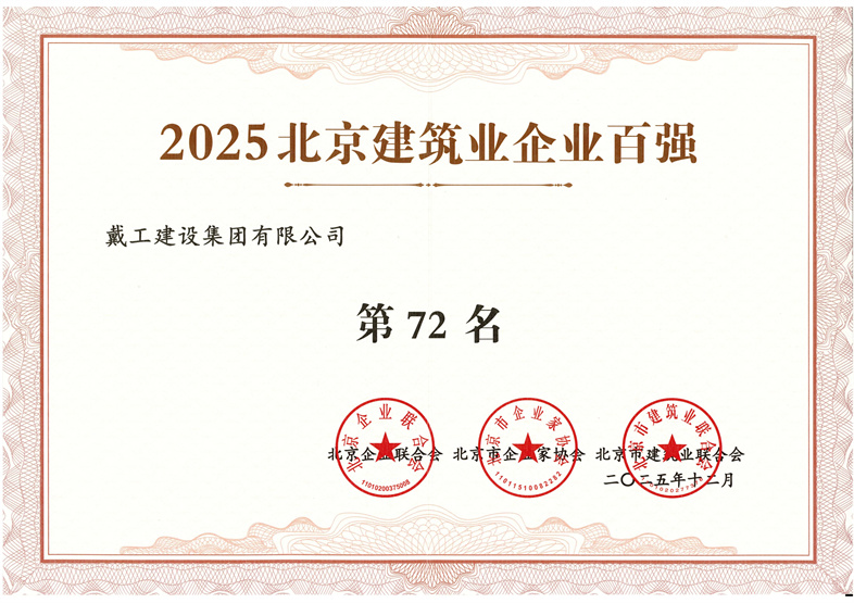 時(shí)序更替,華章日新。2025年第四季度,戴工建設(shè)集團(tuán)在行業(yè)競(jìng)爭(zhēng)中勇立潮頭,凝心聚力深耕主業(yè)、創(chuàng)新突破賦能發(fā)展,不僅交出了一份亮眼的年度成績(jī)單,更斬獲三項(xiàng)行業(yè)重磅榮譽(yù)——2025年度中國(guó)建筑裝飾行業(yè)十大最具影響力設(shè)計(jì)機(jī)構(gòu)獎(jiǎng)、2025北京建筑業(yè)企業(yè)百?gòu)?qiáng)第72名,董事長(zhǎng)戴輝榮獲2025綠色地產(chǎn)與綠色建筑總工辦法新筑獎(jiǎng)個(gè)人杰出貢獻(xiàn)獎(jiǎng)。一系列實(shí)打?qū)嵉某删团c榮譽(yù),彰顯了企業(yè)穩(wěn)健的發(fā)展態(tài)勢(shì)與強(qiáng)勁的核心競(jìng)爭(zhēng)力。