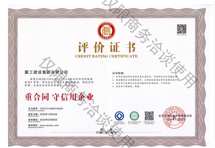 重合同守信用企業(yè)評(píng)價(jià)證書(shū)