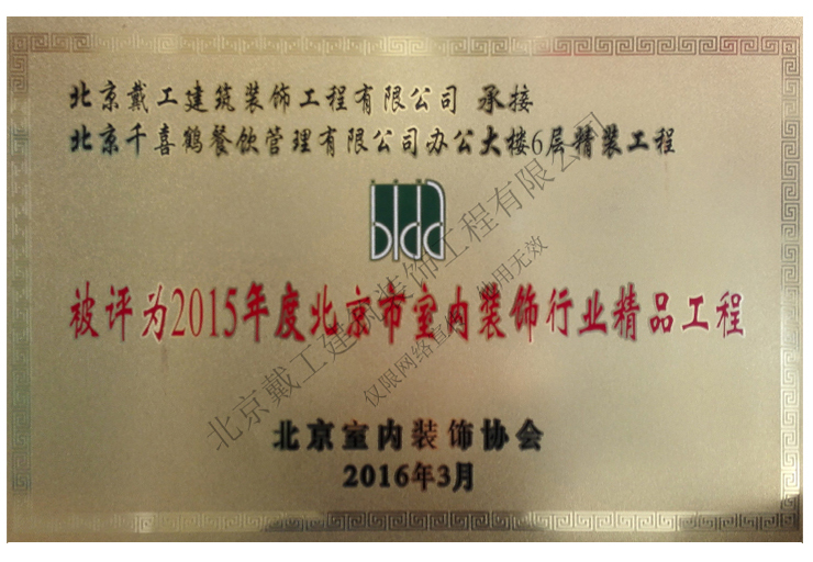 2016年度北京市室內(nèi)裝飾行業(yè)優(yōu)秀企業(yè)