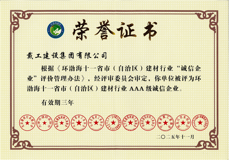 11月26日,環渤海十一省市(自治區)2025年度“誠信企業”頒獎典禮在北京燕京飯店隆重舉行。戴工建設集團憑借其卓越的商業信譽、嚴格的質量管理和高度的社會責任感,從眾多參評企業中脫穎而出,榮獲這一區域性重磅榮譽。戴工建設集團董事長戴輝先生出席典禮并領取獎項。